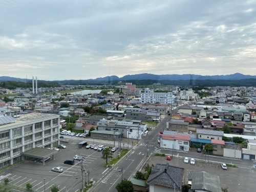 本荘駅前のステーションホテルでは、電車がくるたび、わーっと一気に降りてくる高校生の姿に活気を感じ元気をもらえたり、ホテルアイリスでは、「警察署を見下ろしながら飯を食う」という何と表現していいか優越感(?)を感じられたり(笑)、グランドホテルでは、ゆり橋と夕日との見事な景色を見れたり(写真を撮り損ねた・・)楽しんでいます。