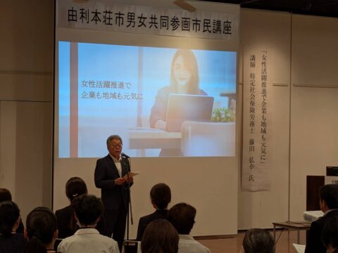 今回は社労士の藤田弘幸さんの基調講演や「秋田県女性の活躍推進企業表彰」を受けられた「むつみ造園土木」様よりその取り組みを伺い「誰もが輝く職場とまちづくり」の実現をテーマに話を伺います。