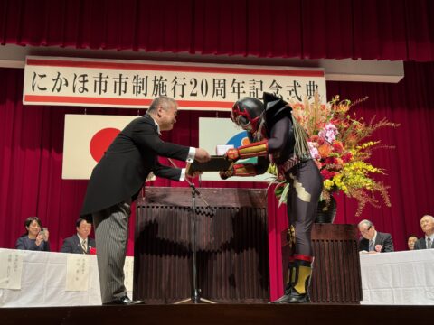 功労者表彰に続き、にかほ市で生まれた「超神ネイガー」へ感謝状が贈呈されました。