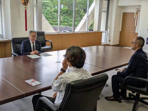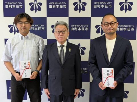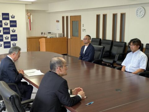 25、26日に北海道勇払郡安平町にて開催される「全日本ホルスタイン共進会」に出場する、新林牧場の柴田睦さんと花立牧場の佐藤俊弥さんが来庁されました。