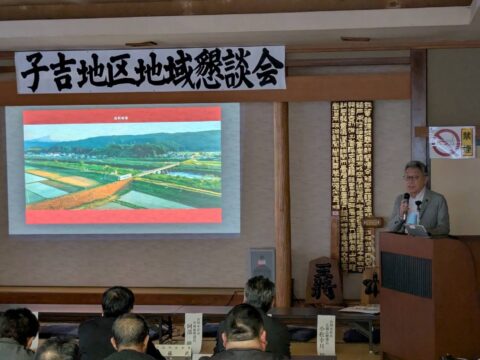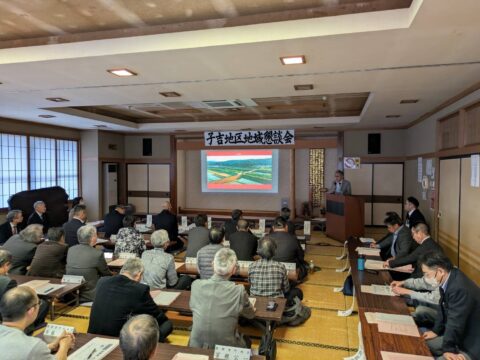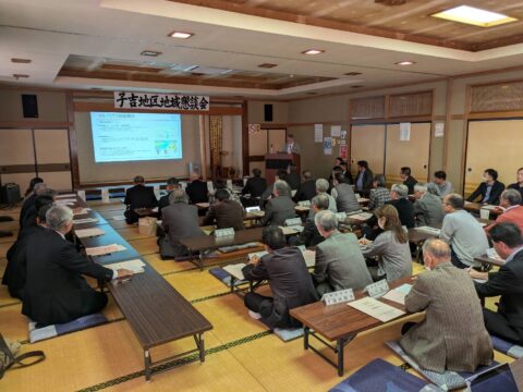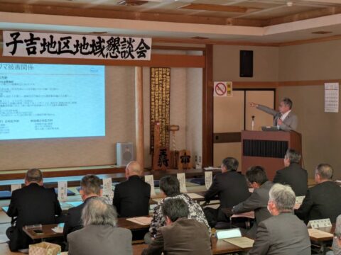 子吉地区地域懇談会にて市からの情報提供や市幹部との情報交換を行いました。