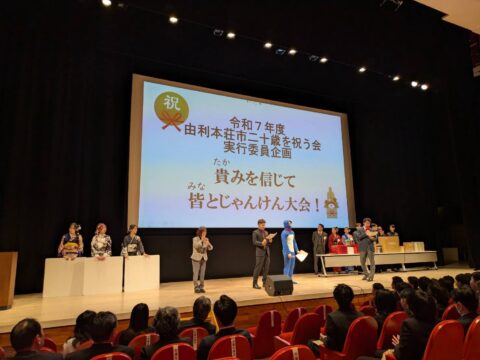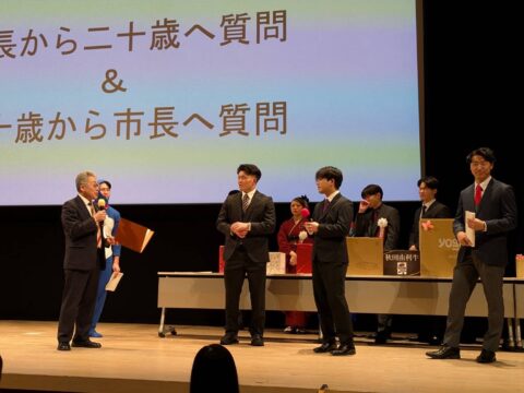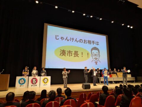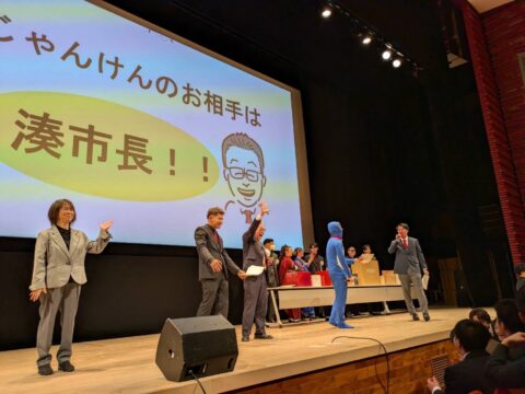 式典後には二十歳のみなさん主催のイベントがあり、市長と交流を、との事でじゃんけん大会が催されました。