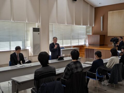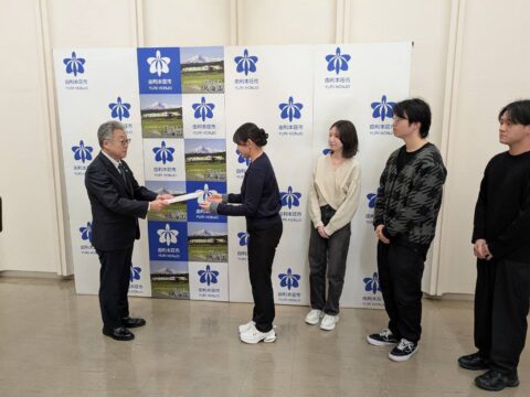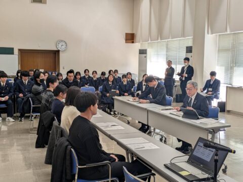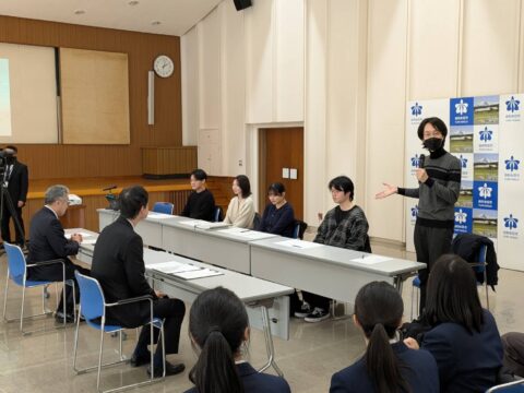 報告会には秋田大学の学生に加え由利高校の皆さんも来庁されワークショップ開催。