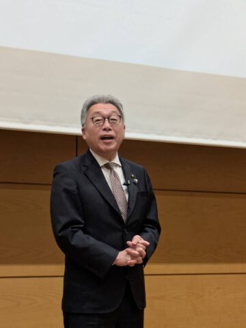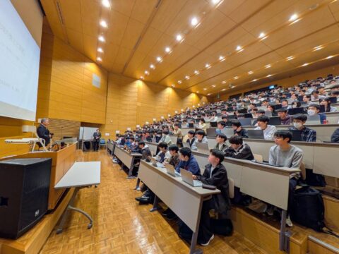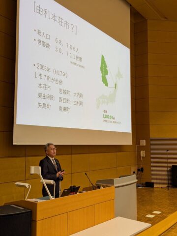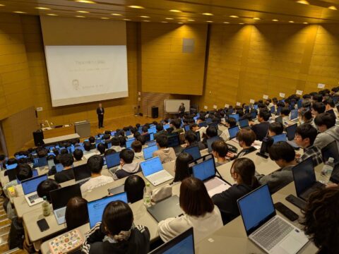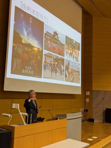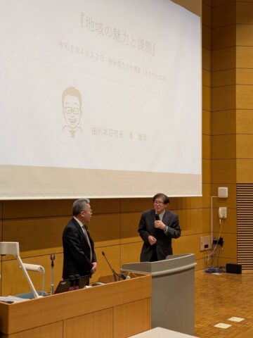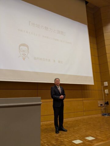 「あきた地域学」の授業で新1年生250に市の紹介や学生へ期待することなど話をしました。